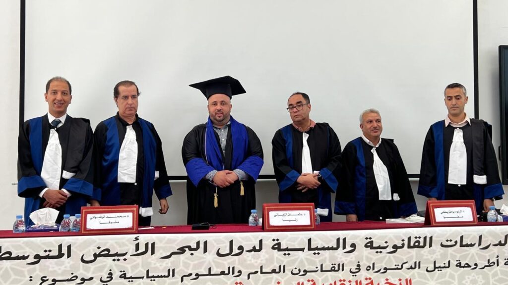 شهد مختبرالدرسات القانونية والسياسية لدول البحر الأبيض المتوسط صباح يوم ال الأربعاء 02 يوليوز 2025، مناقشة أطروحة لنيل درجة الدكتوراه في القانون العام بالمدرج S بالكلية متعددة التخصصات بالناظور، تقدم بها الطالب الباحث “عبد الحق المساوي “‏‎