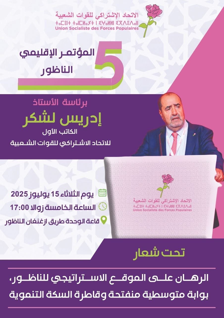 وبشكّل هذا اللقاء محطة تنظيمية هامة لتجديد العهد مع ساكنة الإقليم، واستحضار التحديات الراهنة التي يعيشها الناظور، لاسيما في ظل التحولات الكبرى التي يعرفها الإقليم، خاصة ما يتعلق بمشروع ميناء الناظور غرب المتوسط، والإصلاحات المرتقبة في البنية التحتية، والتنمية الاقتصادية والاجتماعية