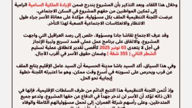ورغم النقاش، لم يفضِ الاجتماع إلى نتائج عملية أو مخرجات واضحة، حيث تم الاكتفاء بتبرير “برنامج الدعم” باعتباره إجراءً إدارياً واجتماعياً، دون تقديم أي سند قانوني يربطه بالمشروع الملكي للسكن الاجتماعي.